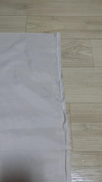 밑단을 살짝 자르고 다시 바느질.