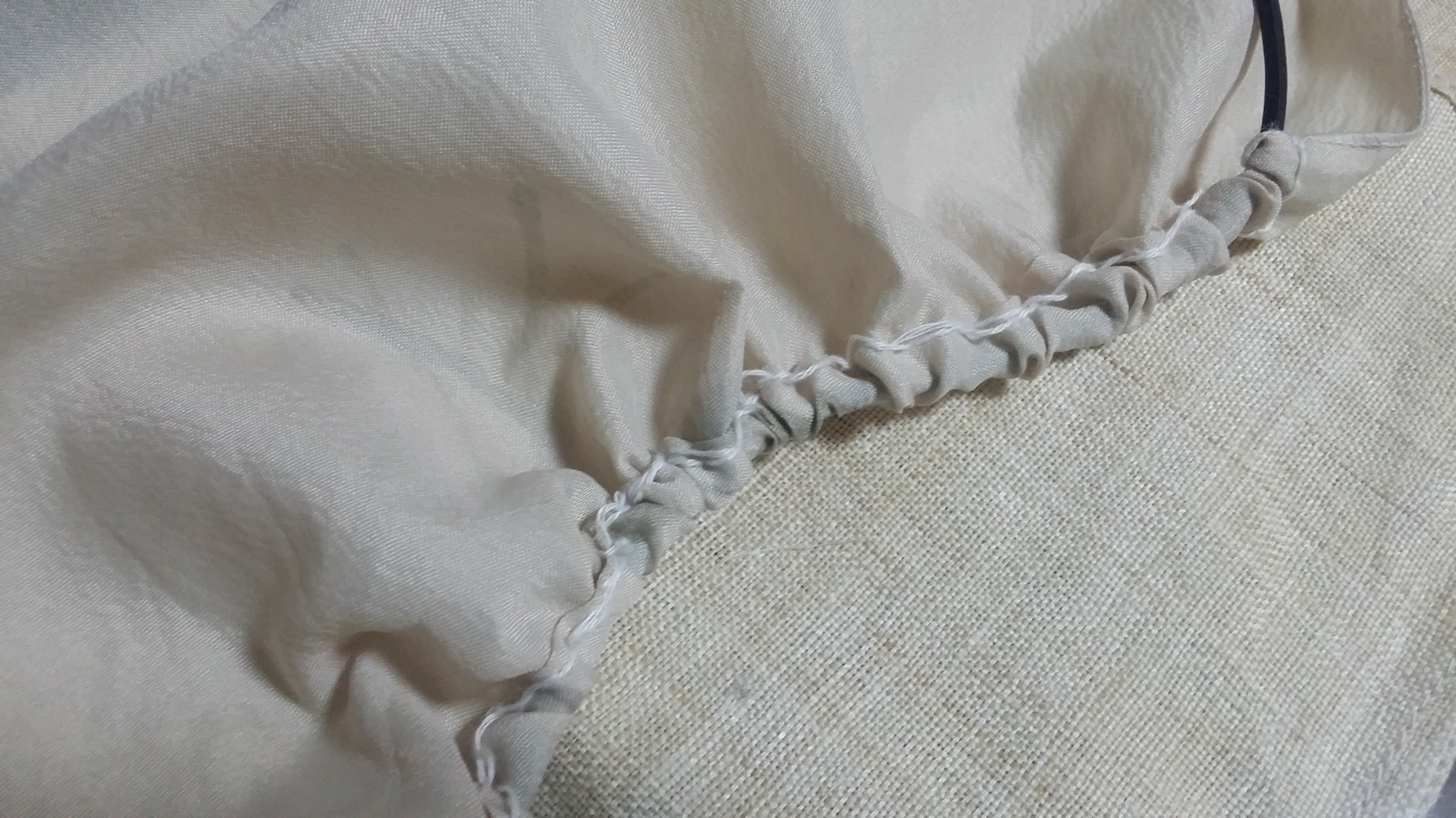 그래서 평이하게 직사각형으로 재단하고 검정 고무줄 넣을 자리 맞춰서 바느질 시작!