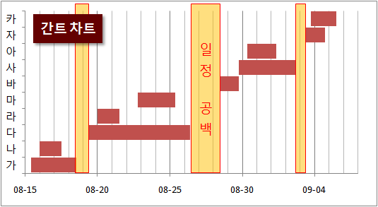 엑셀로 간트 차트 만드는 방법은 알아서 검색해보기 바라고,