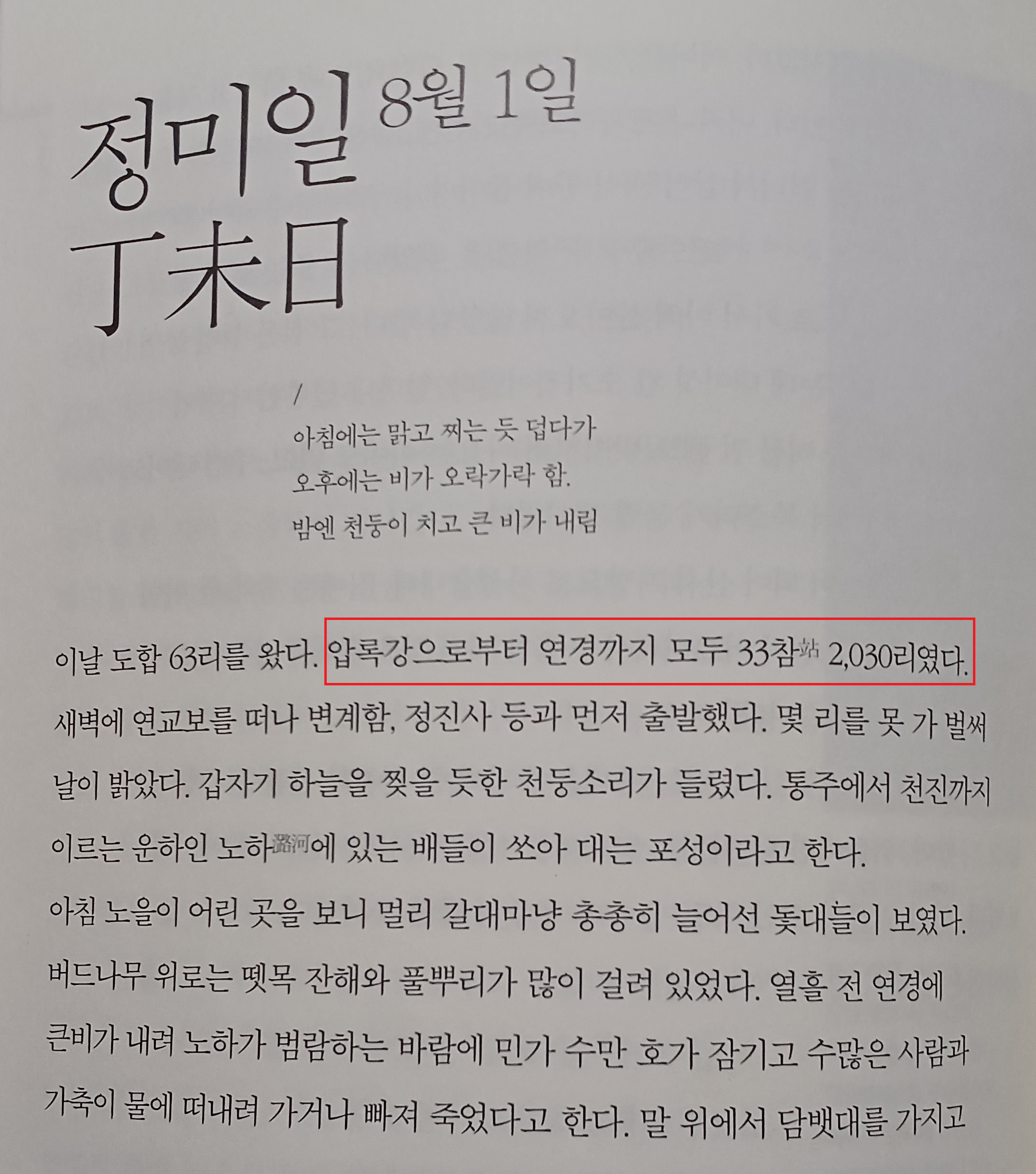 그런데 압록강에서 연경까지의 날짜별 이동거리를 취합하면 1,875리인데