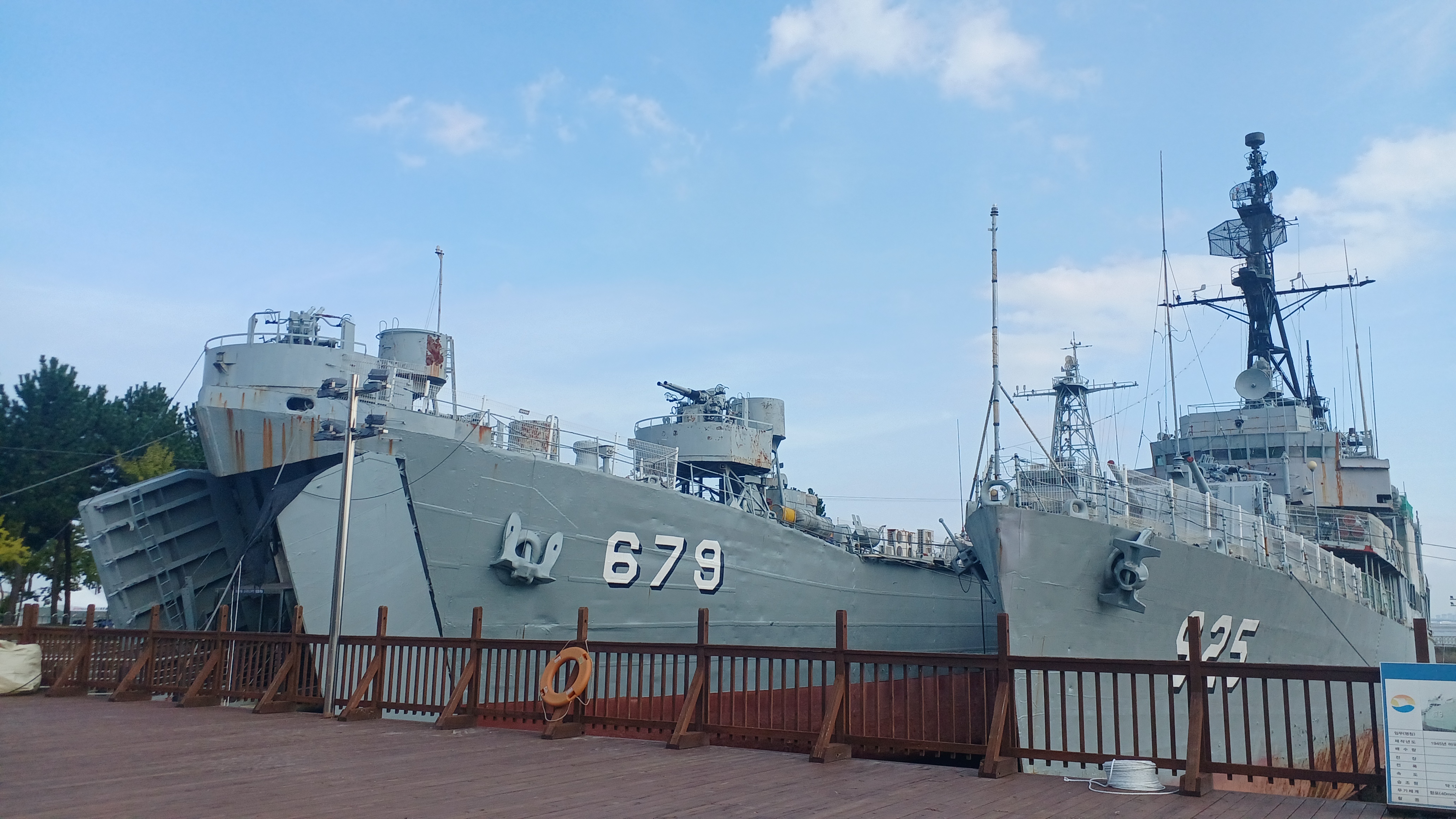 전시된 해군 함정은 수리 중이다.