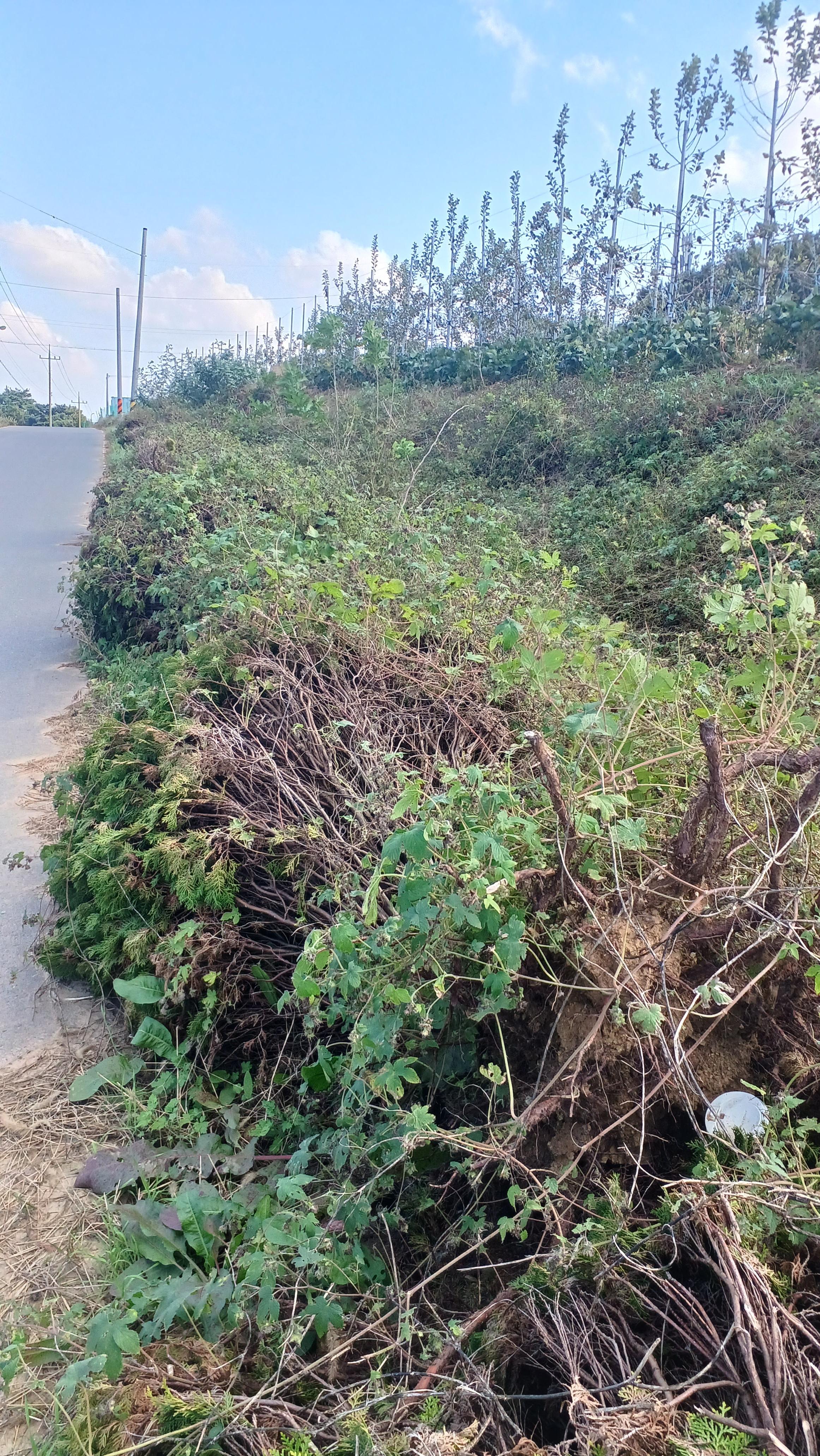 무슨 영문인지 가로수로 심은 측백나무를 뿌리가 드러나게 자빠뜨려 놓았다.
