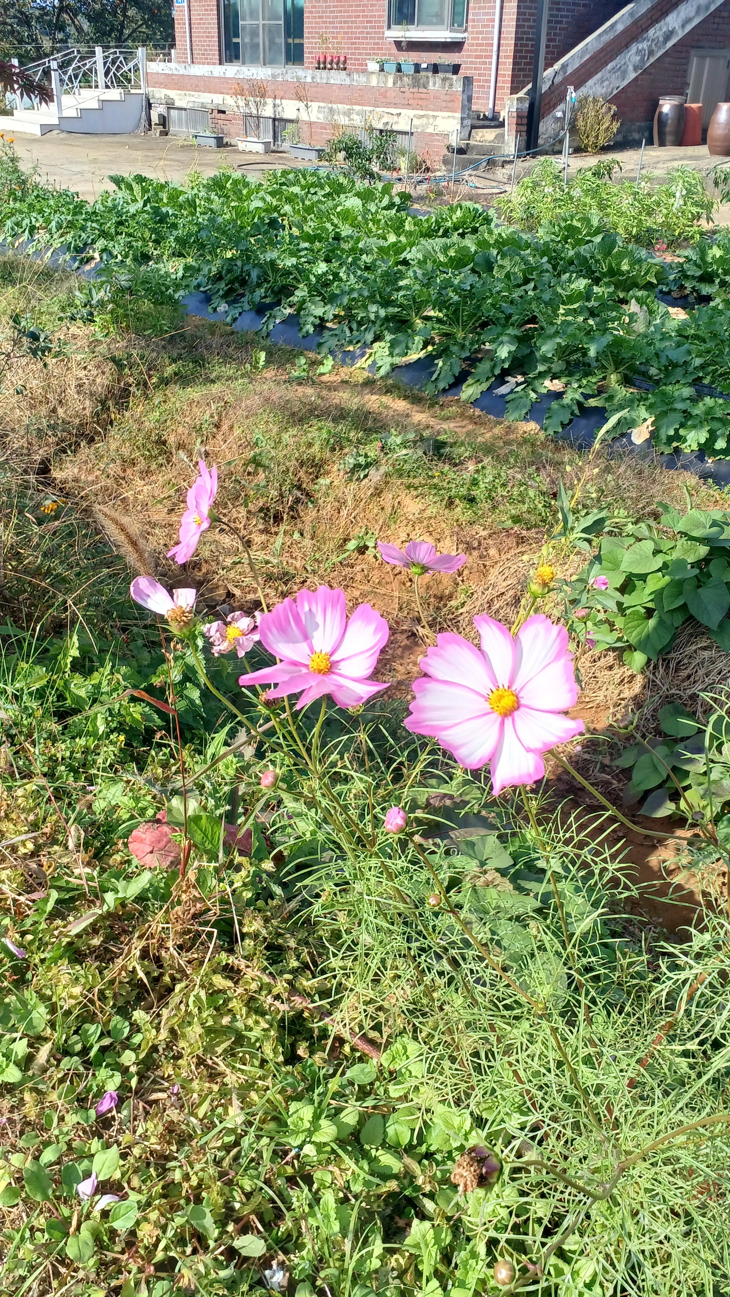 바깥쪽으로 잎색이 달라지는 코스모스도 예사롭지 않다.