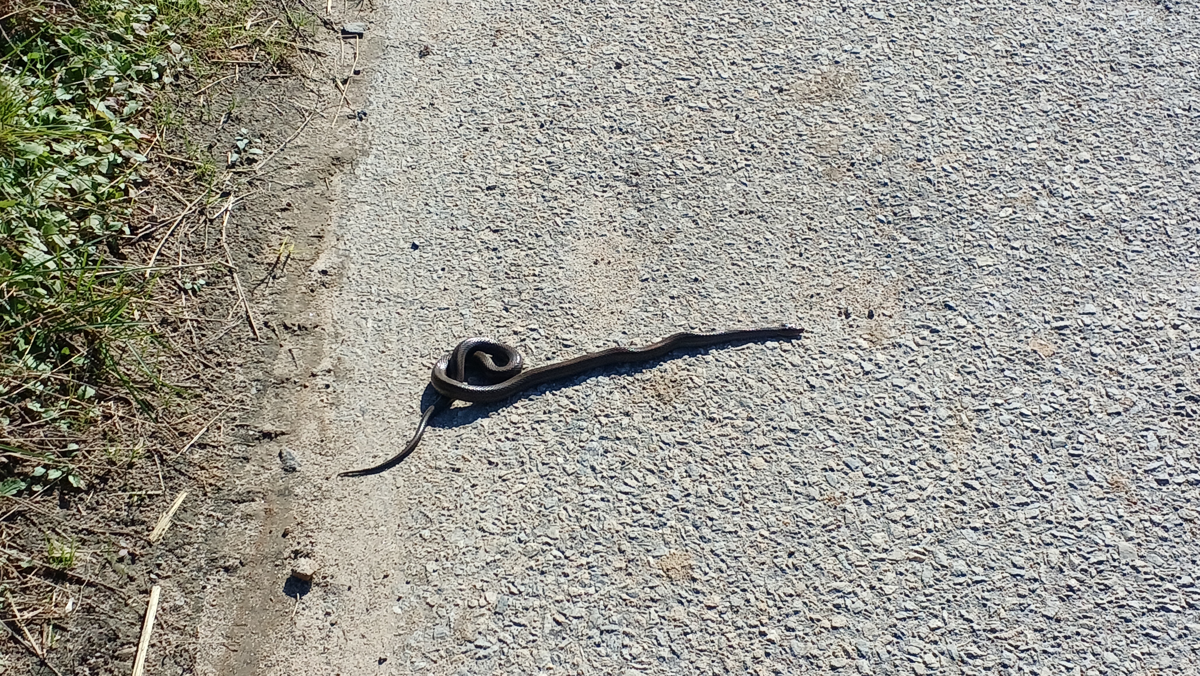나뭇가지로 살살 찔러도 미동도 않는 것으로 봐서는 체온을 높이려 일광욕 중인가 본데