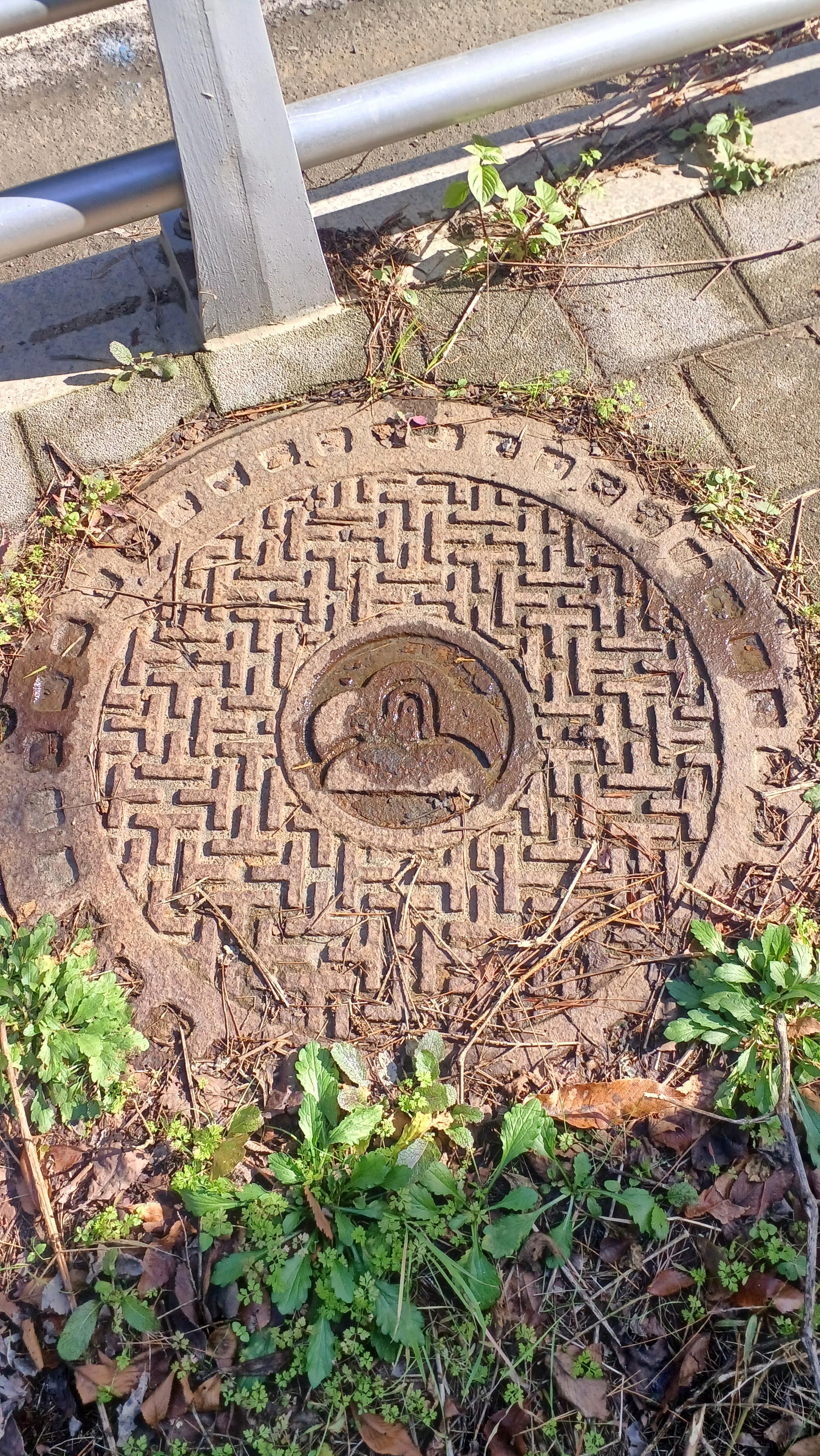 맨홀 뚜껑에 새겨진 문양이 잠시 어릴 적 추억을 떠올리게 한다.