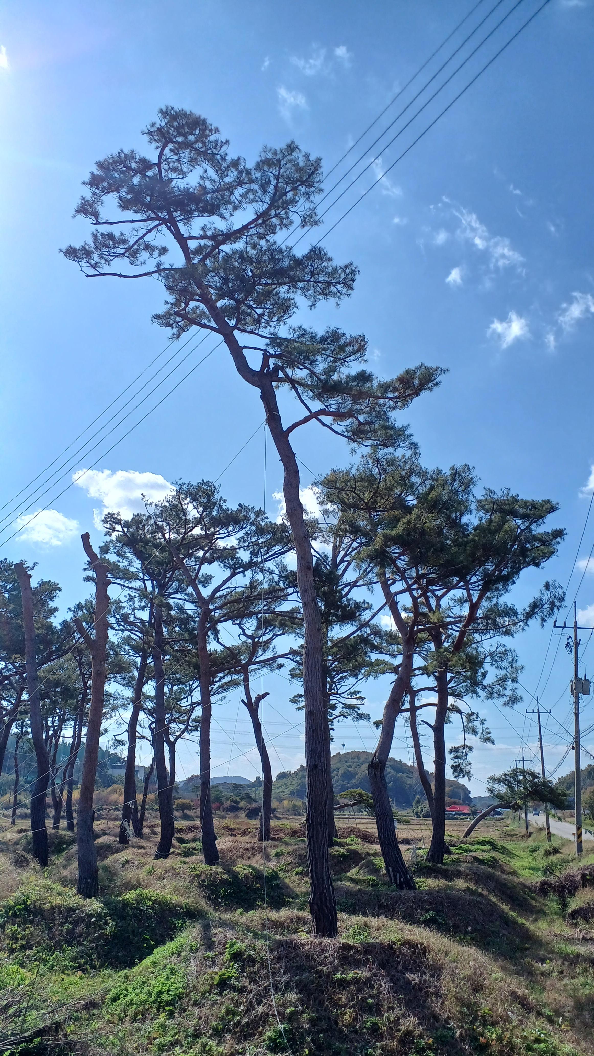 소나무를 가로수로 쓰는 곳은 또 처음이다.