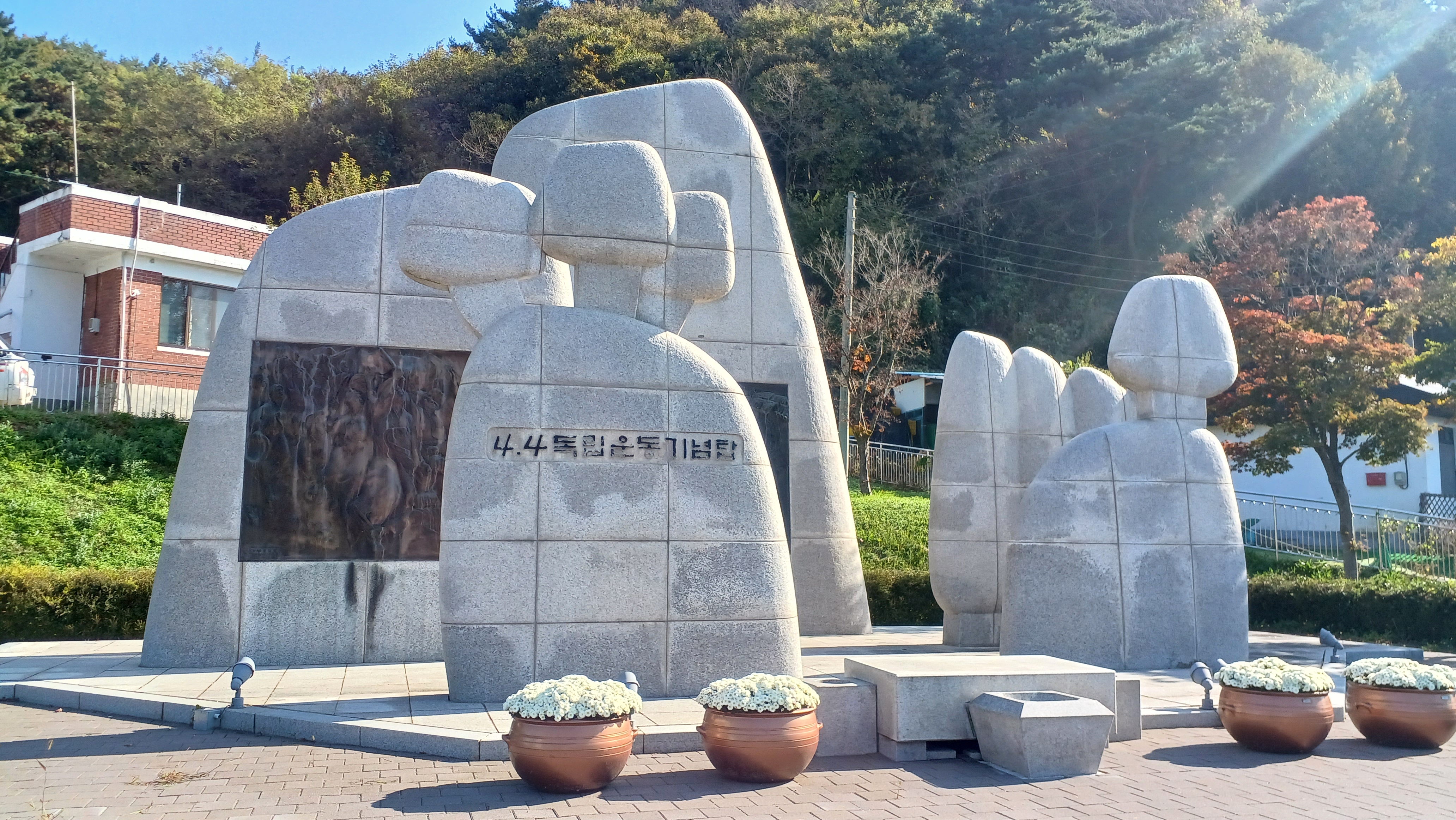 다가가 확인하니 4.4독립운동기념탑이라 새겨 있다.