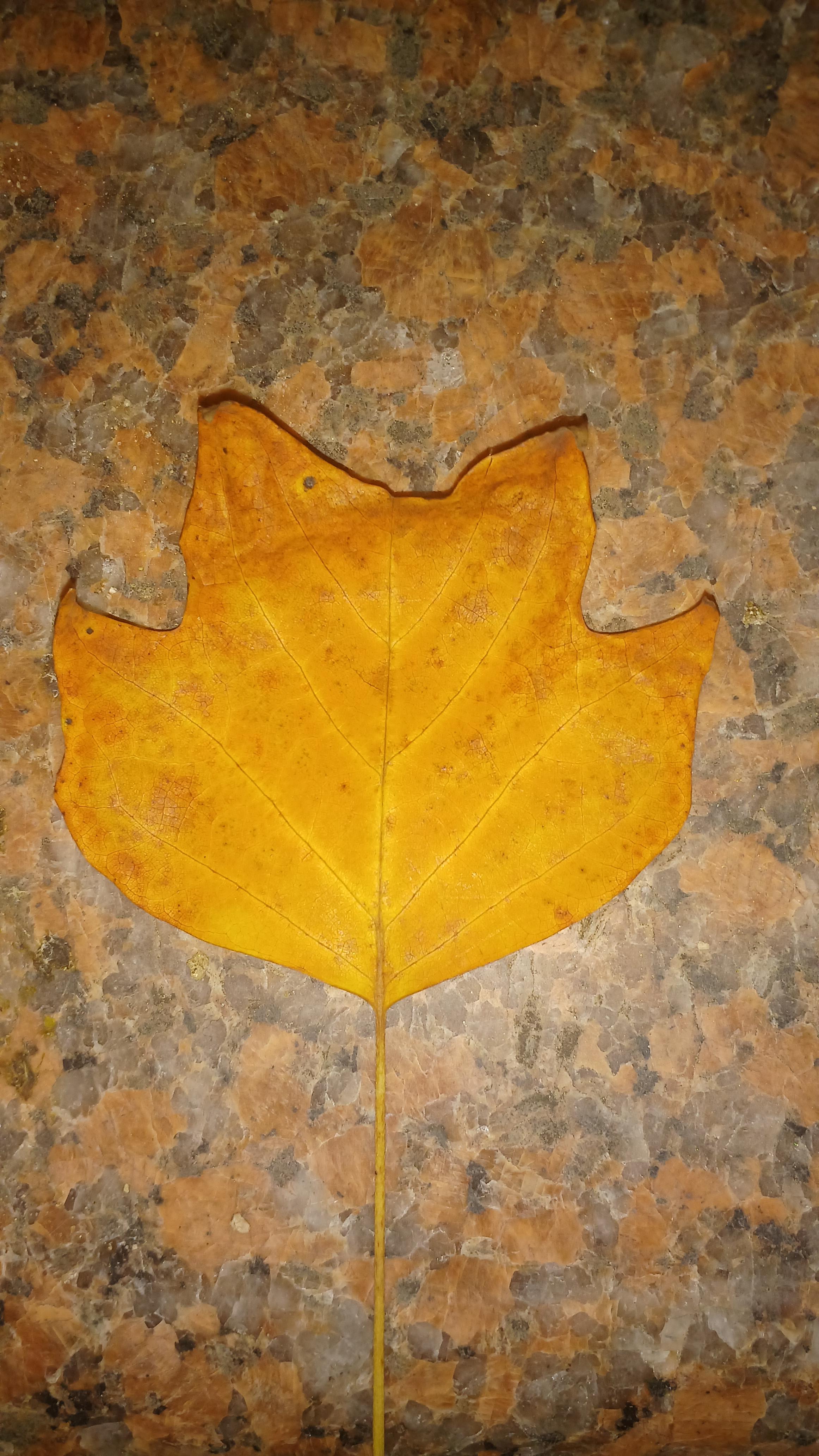 관리인이 비질을 하며 단풍잎을 쓸어 모으는데 나뭇잎 모양이 특이한 것이