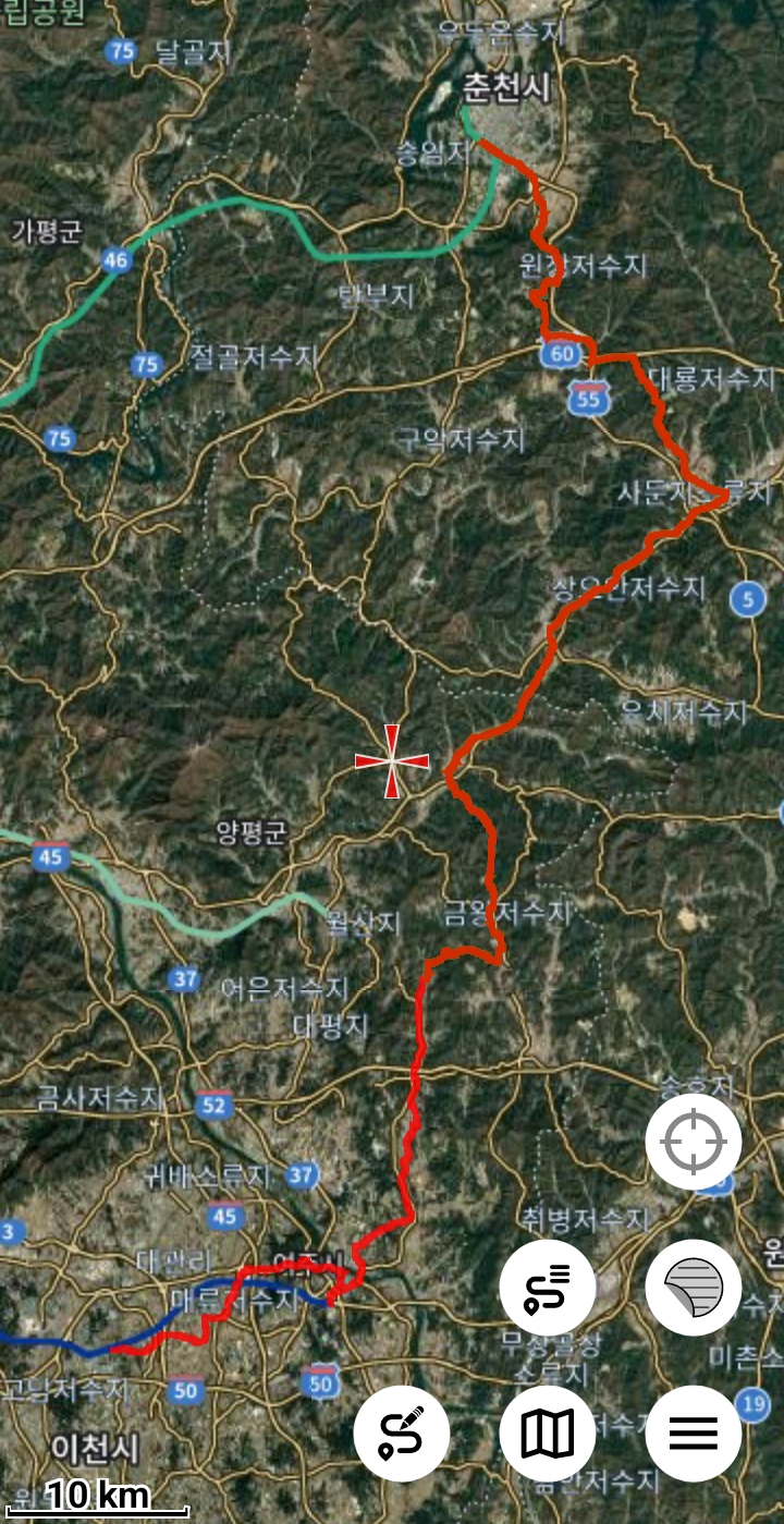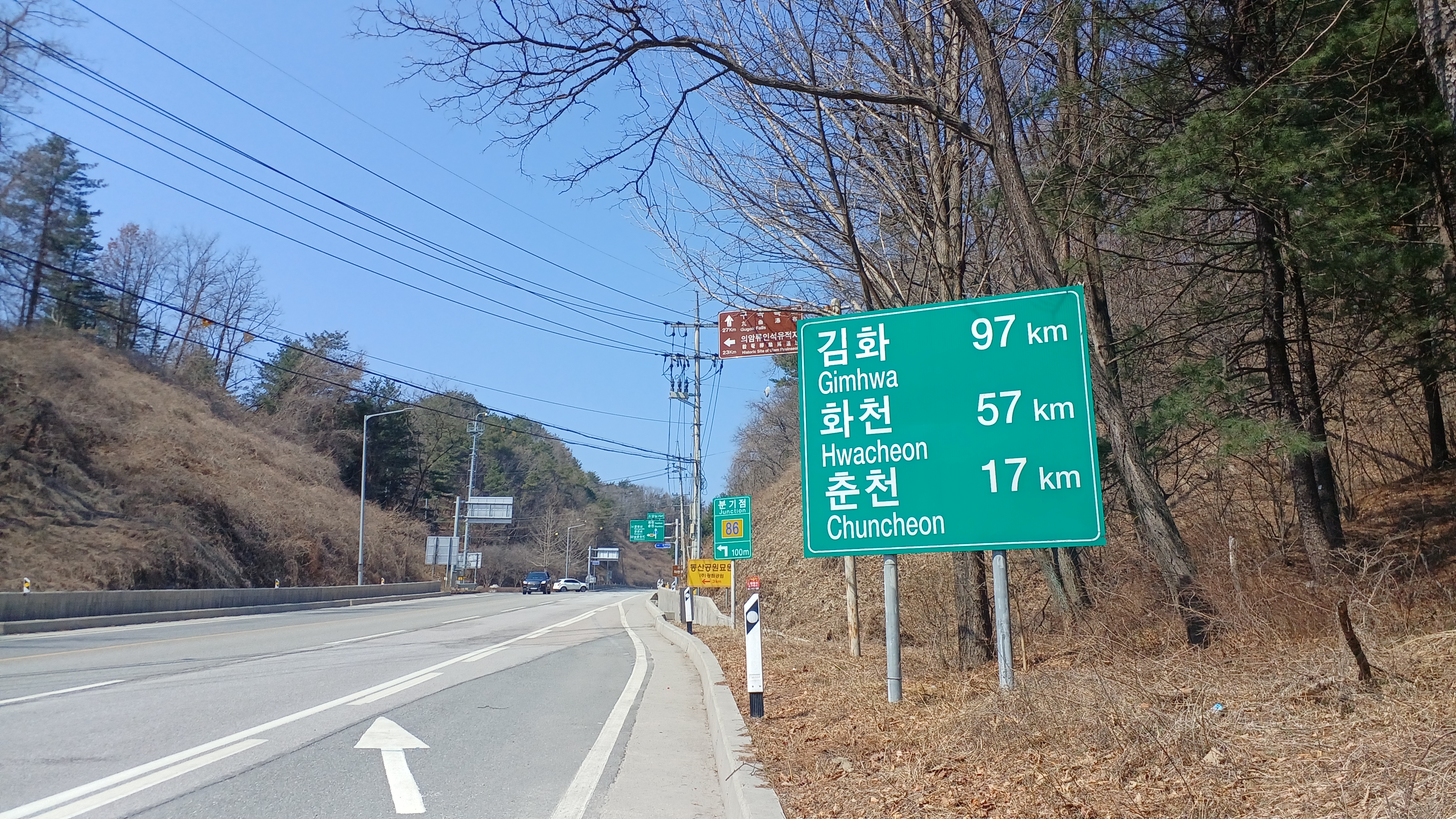 오늘 여정은 홍천에서 남춘역까지인데 큰길을 요리조리 피해 갈 샛길이 마땅치 않다.