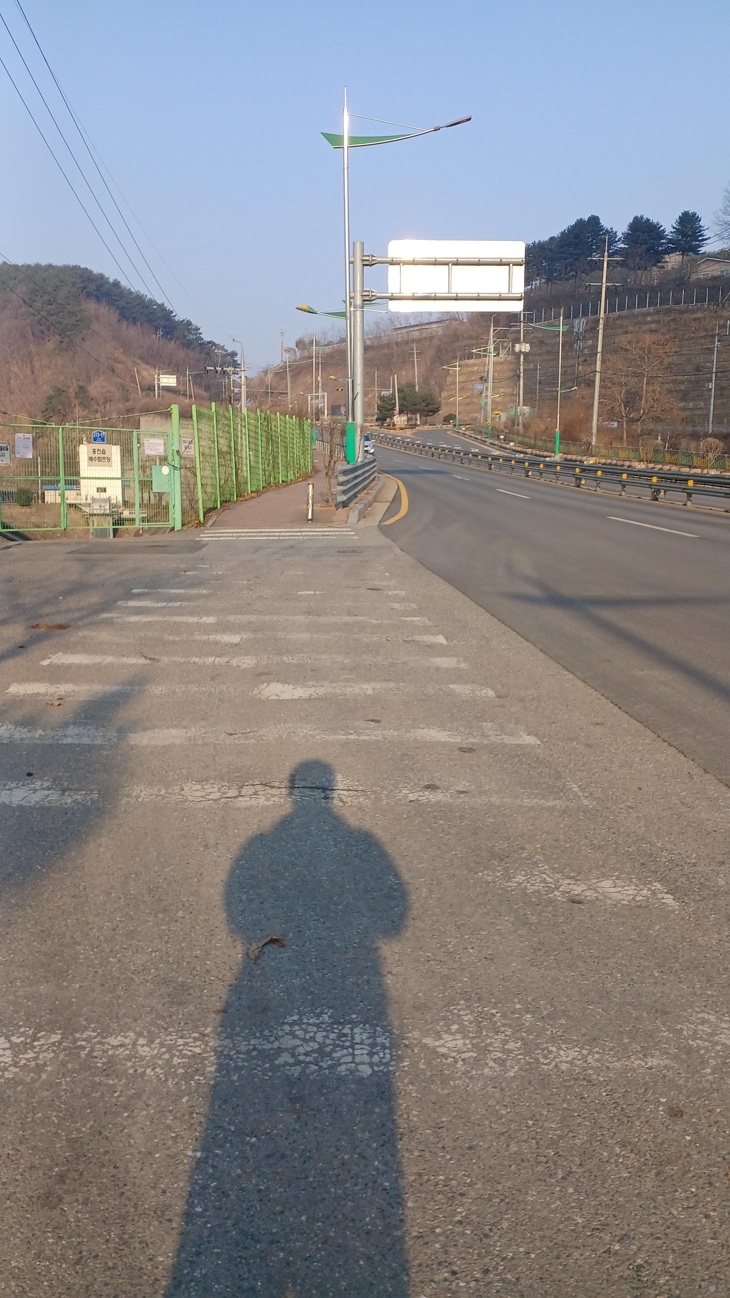 5번 국도 따라 매연과 소음을 견디며 마냥 걸어야 한다.