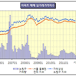 언제도 얘기했듯, 차트나 그림 그리기에 그닥 취미가 없다. 그러나 수많은 수치를 보여주기에 이 보다 효율적인 것도 없다는게 현실. 이중축 차트를 그리려 한다. 하나는 분산형, 또 다른 하나는 막대형. 그런데 문제는 X축을 달리 나타내고 싶다는 것! 엑셀2010 시대에, 곧 있으면 엑셀2012가 나온다는 시점에 엑셀2003으로 이중축 차트 그리는 방법을 소개하려는 좀 뻘줌은 하군... 자 본론 들어가신다~ 자료는 국토부에서 공개하는 아파트 실거래 가격지수(서울 동북권)를 참고했다. 그런데 '동북권'이라는 지역이 포함된 비교 가능한 지수를 이용해야 했으나, 동북권이란 범위가 좀 모호하고, 아파트 실거래 가격 취합하기는 더더욱 힘들고... 그래서 쉽게 가기 위해 노원구 지역 아파트 실거래 가격을 취합해 나름대..