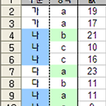 자료를 접하면 가장 먼저 선행하는 작업이 정리하기가 아닐까 한다. 물론 정리에는 다행한 방식이 동원되겠지만, 간단히 몇가지만 살펴본다. 위 자료를 갖고 정리를 한다면... 우선 '구분'에 등록된 종류별로 나열할 필요성이 있고, '구분'에 따른 항목을 정리할 필요성도 있고, '구분&항목'에 따른 '값'을 정리할 필요성이 있겠는데... 여기서 다루려는 부분은... '구분'의 종류, 그리고 '구분'에 따른 유일 '항목'의 수, 더불어 '구분&항목'에 따른 값의 합계가 조건 '>20'을 만족하는 유일 '항목'의 수 정도다. e2 셀 (구분) =INDEX($A$2:$A$11,MATCH(0,COUNTIF(E$1:E1,$A$2:$A$11),0)) f2 셀 (항목수) =SUM(N(FREQUENCY(IF($A$2:$A$..