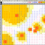 자료에 셀 속성을 살짝 반영해 볼까 한다. 다음의 스카이뷰에 나타난 그림을 보면, 셀 마다 주된 주택형태가 어느 정도 구분되어 있는 것으로 여겨져 크게 '아파트'와 '아파트外'로 정보를 등록한다. 대충 점포의 주택형태가 조금씩 달라 보이는데... 이를 갖고 한번 더 사기를 치고 싶어 손이 근질근질하다. 어떻게? '아파트'와 '아파트外' 셀 간에 서로 다른 가중치를 부여하면 된다. 물론 가중치 산정 기준은 며느리도 모른다. -_-a g38 셀 (유효 셀 평균 가중치) =SUMPRODUCT(COUNTIF(N33:AQ58,{1;2}),G36:G37)/G34 그리고 구한다. 점포별 매출 점유율을... h54 셀 (셀 가중 매출M/S) =SUM(((TRANSPOSE($D$3:$D$9)/((MOD(ROW(INDIR..