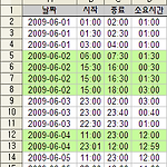 얼마 전 오피스튜터에 올라온 질문인데, 오픈오피스(OpenOffice)의 캘크(Calc)를 이용해 겹치는 시간을 단일로 처리한 총소요시간을 구해볼까 한다. d2 셀 (소요시간) =N(B2>C2)+C2-B2 그러고보니 이와 유사한 시간 계산을 예전에 한번 검토한 적이 있다. 그때 작성한 수식을 재활용해도 될거 같다. 단지 집계 양식이 별도로 있지 않고, 그땐 엑셀로 수식을 작성했으나 여기선 캘크로 처리한다는게 차이점 이랄까. g3 셀 (IF) =TIME(0;SUM(IF(MMULT(IF(TRANSPOSE($A$2:$A$15=F3)*(IF(TRANSPOSE($B$2:$B$15)TRANSPOSE($C$2:$C$15);1;0))>TIME(0;ROW($A$1:$A$1440)-1;0);1;0));1;0);POWER(..